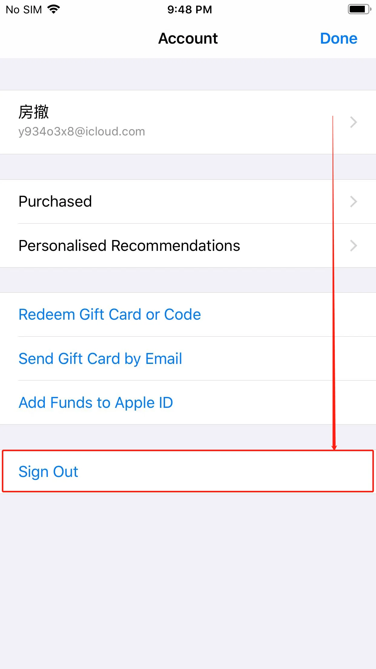 Login to the United States Apple ID you just registered, select "Sign In", do not click "Done" at the upper right corner.