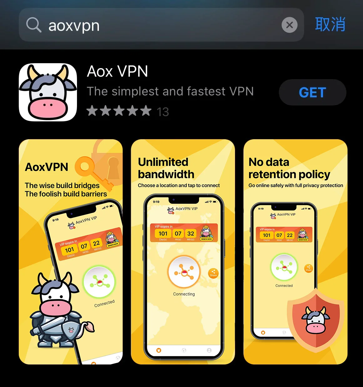 When you find that the store content has changed to english, this means you have successfully switched to United States region. You can search for AoxVPN in the store to download.
