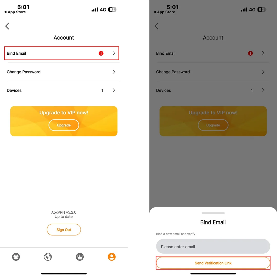 Go to account page on AoxVPN mobile app. Click on the top banner to enter account setting page.