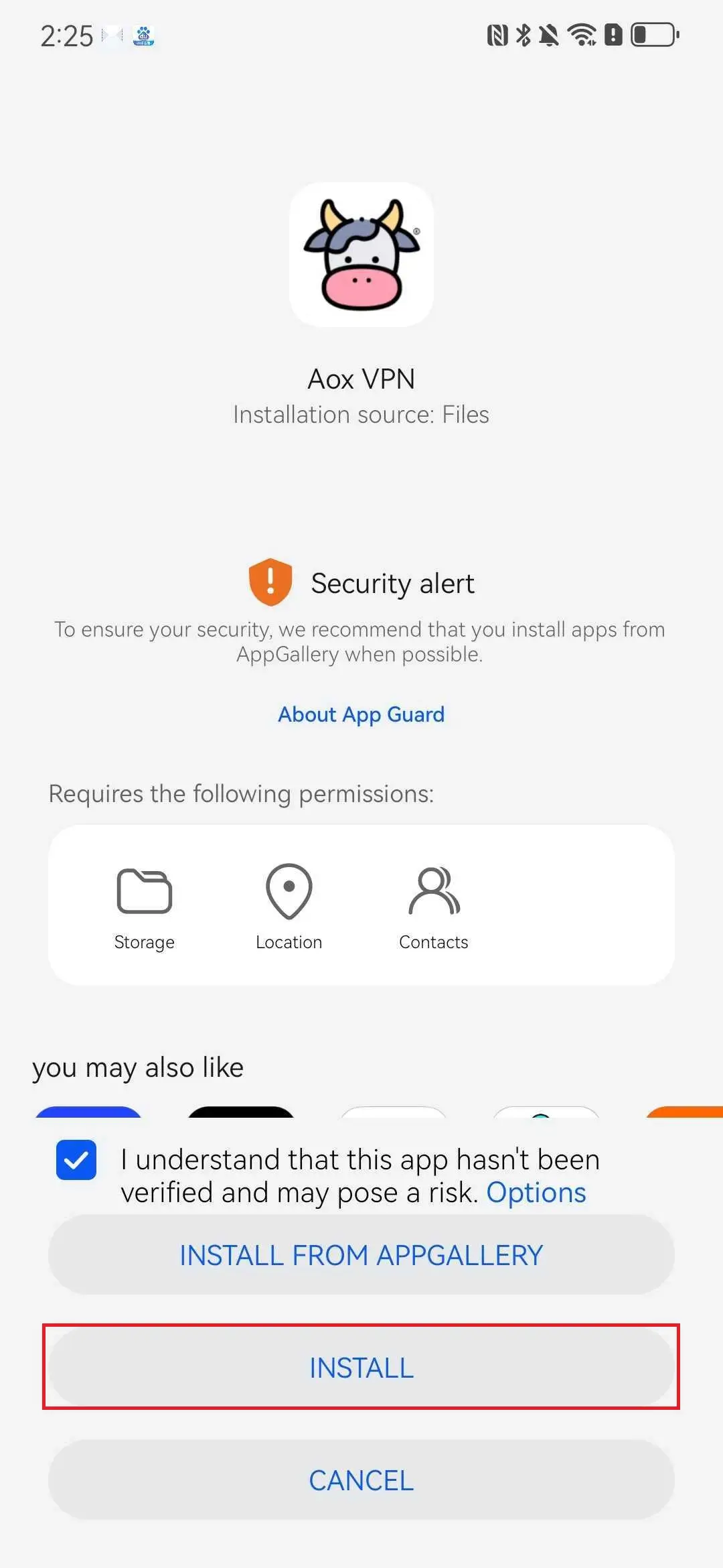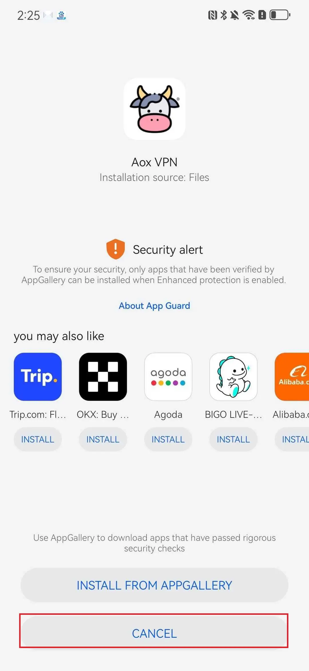 If you encounter a security warning during installation and no Install button is shown, click Cancel.